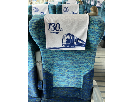 名古屋鉄道様が130周年を迎え、記念の一環として特別に運行される「ブルーミュースカイ」車両用のシートカバーを製作いたしました。