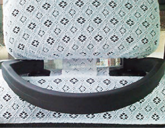 取り付けは非常に簡単。ヘッドレストを外し、ステーに通すだけで完了します。